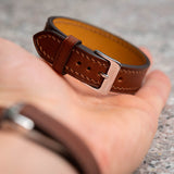 The elegant and timeless design of the calf & goat leather bracelet goes well with any outfit. It never goes out of style. It’s easy to fall in love with it, especially because of it’s uniqueness and character.