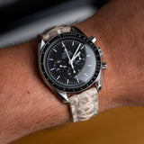 The Himalaya round scale watch strap has a unique and different pattern than our classic Himalaya straps, especially because it’s made of the flank skin. It has a beautiful texture, good scratch and water resistance, and it’s very comfortable on the wrist. Like all of our bespoke straps, the Himalaya round scale watch straps are hand-stitched and every detail is hand-finished.