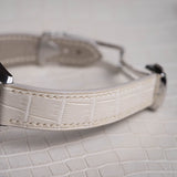 The color is what makes it special, especially because white is the hardest color to achieve with crocodile skins. The process of dyeing a crocodile skin is very time-consuming and more difficult as the shades lighten.