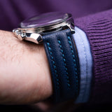 Express yourself. Our double padded strap is the most customizable strap. You can perfectly match the edge stitching and also the middle stitching with the colors of your timepiece. This is our most curajos design. You will definitely turn heads with the double padded strap on your wrist.