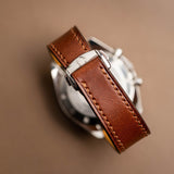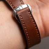 Chestnut Buttero Calf Omega-Style Deployant Strap & Light Brown Thread