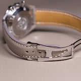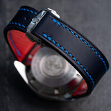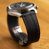 Minimal Stitching Design - Omega-Style Deployant Black Calf Leather Strap